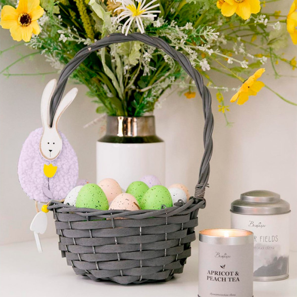 Подарочная круглая корзина с ручкой 30х14 см (графит)